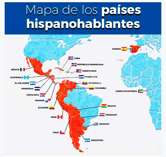 TODO LOS PAÍSES HISPANOS: ARGENTINA, BOLIVIA, CHILE, COLOMBIA, COSTA RICA, CUBA, ECUADOR, EL SALVADOR, GUATEMALA, GUINEA ECUATORIAL, HONDURAS, MÉXICO, NICARAGUA. PANAMÁ, PARAGUAY, PERÚ, PUERTO RICO, REPUBLICA DOMINICANA, URUGUAY, VENEZUELA.